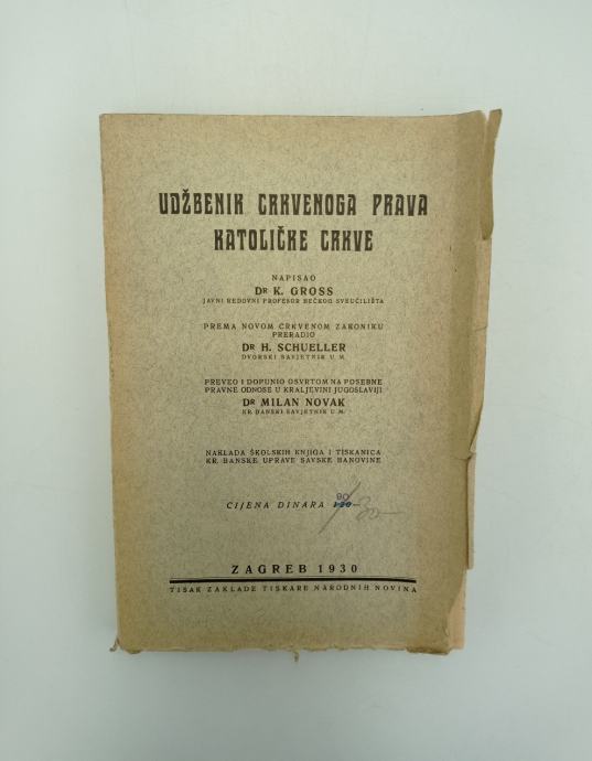 Karl Gross: Udžbenik crkvenoga prava katoličke crkveStranica: 456Dimenzije: 16.5x24Jezik: ZagrebPismo: LatinicaStanje: DobroUvez: MekiGodina: 1930