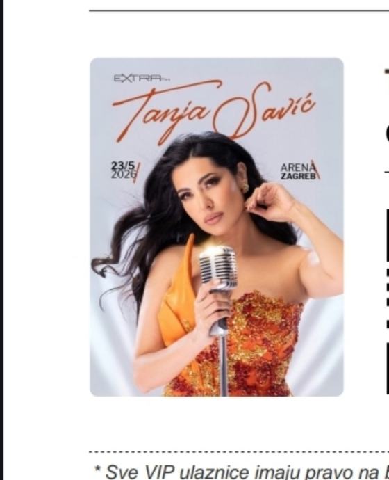 Prodajem ulaznice za koncert Tanje Savić koji se održava 23. svibnja 2026. godine u Areni Zagreb. Ulaznice su nove.