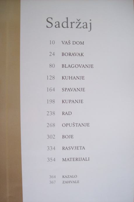 Svrha je ove knjige odgovoriti na izazove s kojima se susrećemo pri uređenju svog doma. Na stranicama naći ćete tlocrte, palete boja, vodič kroz materijale i stotine jednostavnih savjeta zbog kojih će uređenje vašeg doma postati jednostavan, zabavan i nadahnut posao. Knjiga je zbog preglednosti podijeljena na poglavlja u kojima su obrađene pojedine prostorije.