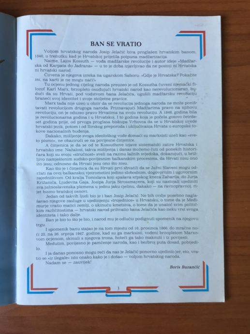 Knjižica je prigodno izdanje povodom vraćanja spomenika bana Jelačića na glavni trg u Zagrebu.