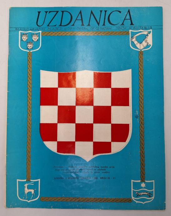 Uzdanica br. 25-26/1968. (emigracija)glasilo hrvatske mladeži Odgovorni urednik: Ante SarićStranica: 20Dimenzije: 22x28Jezik: AustralijaPismo: LatinicaStanje: Vrlo dobroUvez: MekiGodina: 1968