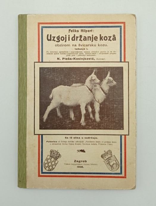 Feliks Hilpert: Uzgoj i držanje kozaobzirom na švicarsku kozuIzdanje I.po četvrtom njemačkom proširenom i popravljenom izdanju slobodno preveo te sa dodatkom njekih šumsko-redarstvenih naših, dalmatinskih i istrijanskih propisa glede paše i pašarenja nadopunio: N. Pleša - Kosinjkovićs 12 slika u sadržaju Stranica: 81Dimenzije: 15.5x22.5Jezik: ZagrebPismo: LatinicaStanje: DobroUvez: TvrdiGodina: 1908