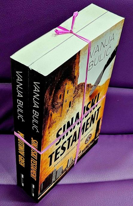 SINJASKI TESTAMENTKako pročitati ono što nije napisano.U tek probuđenom Beogradu, ispred jevrejske sinagoge, ubijen je pravoslavni monah Arkadije. Na obdukciji lekar konstatuje da je monah imao ugrađen čip ispod kože u pazušnoj jami. Ubistvo je obavijeno velom tajne koju ćutanjem podstiču policija i sudstvo. Novinar Novak Ivanović, i pored zabrane da o tome istražuje i piše, uz pomoć privatnog detektiva Obrada dolazi do saznanja da ubijeni monah ima trostruki identitet i da je u Beograd došao zahvaljujući saradnji tajnih policija Srbije i Izraela.Novakovu pažnju najzad privlači Sinajski psaltir, molitvenik pisan glagoljicom u jedanaestom veku, sa dosad pronađenih 209 stranica. Za nestalim stranicama tragaju tajne službe nekoliko država i jedan investicioni fond iz Amerike... Šta se nalazilo na ukradenim stranicama? Kriju li one dogovor predaka o podeli Sinajske pustinje, koja spaja Izrael i Egipat? Da li te stranice skrivaju dogovor o budućnosti Palestine?Zašto je lažni monah Arkadije za izgubljenim stranicama tragao u Srbiji? Dva manastira – Tumane i Gornjak – na više načina su vezani za Sinaj i Manastir Svete Katarine, gde je nastao Sinajski psaltir. Novak obilazi te manastire i upoznaje isposnika Zosima, za koga monasi kažu da je „čuvar tajne“...Napeta drama sa nekoliko misterioznih ubistava razrešava se u gudurama Gornjačke klisure, u srušenom manastiru Blagoveštenje...MILUTINOV GREHKako laž pretvoriti u iskrivljeno lice istine?U hladnoj novembarskoj noći, u Ulici kralja Milutina u Beogradu i ispred hrama Svete Nedelje u Sofiji, ubijena su na tajnom zadatku dva člana društva Opus dei. Ubrzo se u svetskim medijima objavljuje serija tekstova o srpskom kralju Milutinu sa istim ciljem: krivotvorenjem istorije dokazati da je Srbija u četrnaestom veku prišla rimokatoličkoj crkvi i priznala papu kao svog vrhovnog poglavara. Novinar Novak Ivanović otkriva povezanost dva ubistva i serije tekstova, i upada u lavirint međunarodne zavere iza koje stoje odmetnuti članovi društva Opus dei. Oni su organizovali mrežu saradnika u Srbiji i Bugarskoj, stvorivši uporište u policiji, politici i mafiji.Kao ključni dokaz svojih suludih tvrdnji zaverenici nude krivotvoreni putir kralja Milutina, koji će se navodno pojaviti u Londonu, na prodaji u aukcijskoj kući Sodebi. U putiru je, kako tvrde, kraljevom rukom ispisana rečenica koja će promeniti istoriju Balkana, posebno istoriju Srbije...U potrazi za istinom, Novak i privatni detektiv Obrad obilaze zadužbine kralja Milutina, put ih vodi i u Sofiju i na Kosovo i Metohiju, a novinarka Muška je zadužena da nervira političare koji nesvesno, a neki od njih i svesno, podržavaju nasilno prekrajanje istorije. Paralelna radnja romana se odvija na Bodenskom jezeru i u Amsterdamu, a u celoj priči – u sudaru politike, tajnih društava i mafije, značajnu ulogu ima jedna poslanica u Narodnoj skupštini i jedan odsečeni prst... Stranica: 272+288Dimenzije: 13x20 cmJezik: BeogradPismo: LatinicaStanje: Nova knjigaUvez: MekiGodina: 2024