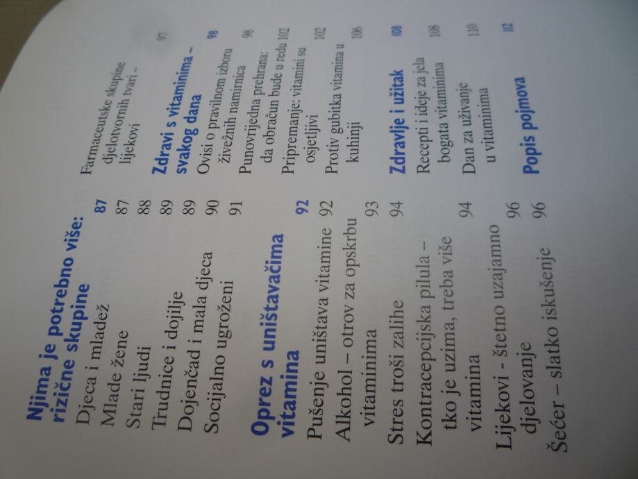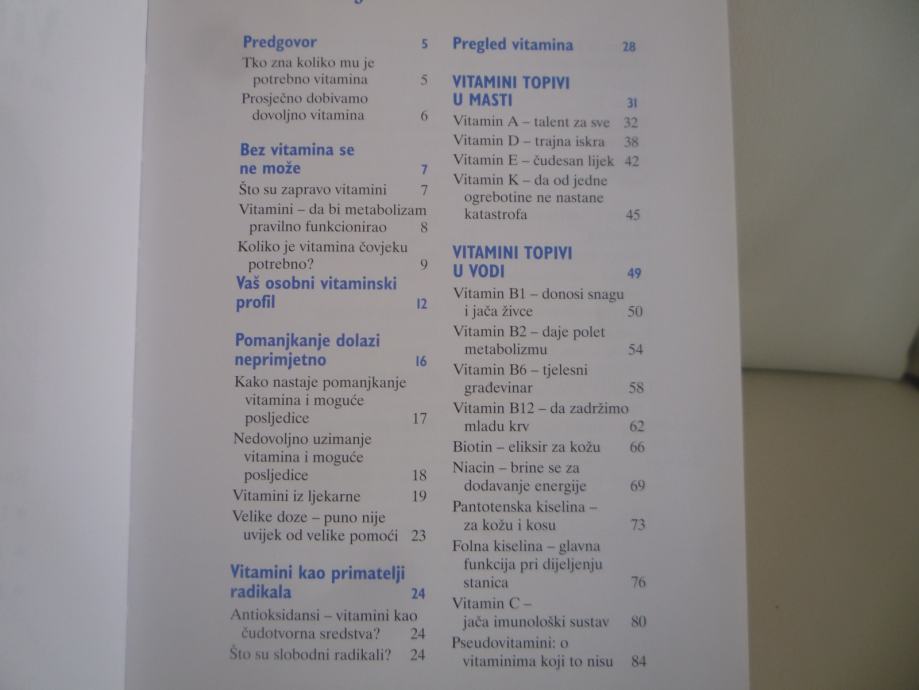 Sve o vitaminima, kako djeluju, posljedice nedovoljnog uzimanja vitamina, preporuke za kupovinu, čuvanje i pripremanje hrane bogate vitaminima. Ideje i recepti za svaki dan. 113 stranica.