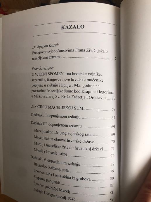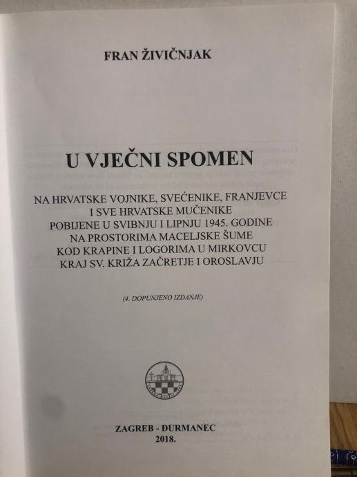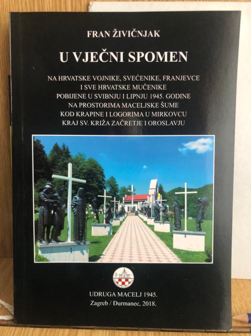 U VJEČNI SPOMEN NA HRVAZSKE VOJNIKE, SVEĆENIKE, FRANJEVCE I SVE HRVATSKE MUČENIKE POBIJENE ... 1945. NA PROSTORIMA MACELJSKE ŠUME ... I LOGORIMA U MIRKOVCU KRAJ SV. KRIŽA ZAČRETJE