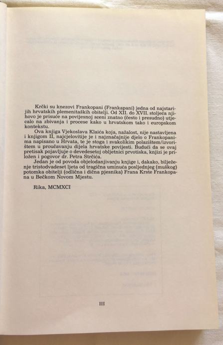 Vjekoslav Klaić - Krčki knezovi Frankapani Reprint 1991