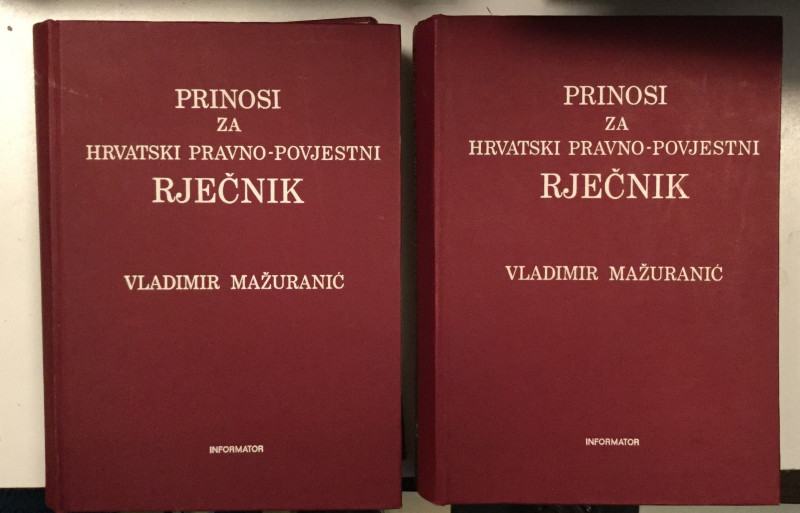 VLADIMIR MAŽURANIĆ : PRINOSI ZA HRVATSKI PRAVNO POVJESTNI RJEČNIK