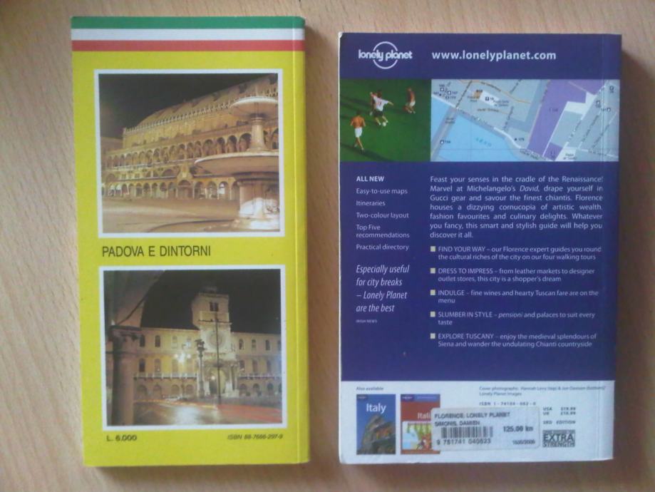 Dva vodiča : Padova na talijanskom, Firenca - na engleskom, oba iznutra kao nova, Firenca ima na prvoj strani na margini crtu. Džepno izdanje, meki uvez. Pojedinačno: 1.99 eura+pt.