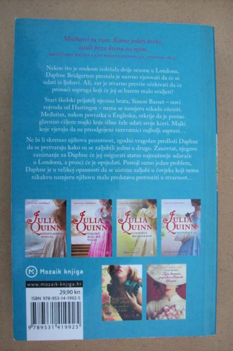 Nakon što je mukom izdržala dvije sezone u Londonu, Daphne Bridgerton prestala je naivno vjerovati da će se udati iz ljubavi. Ali zar je stvarno previše očekivati da će pronaći supruga koji će joj se barem malo svidjeti? Stari školski prijatelj njezina brata, Simon Basset – novi vojvoda od Hastingsa – nema se namjeru nikada oženiti. Međutim, nakon povratka u Englesku, otkrije da je postao glavnim ciljem majki koje silno žele udati svoje kćeri. Majki koje vjeruju da su preodgojeni razvratnici najbolji supruzi…