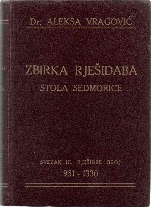 Vragović, Aleksa : Zbirka rješidaba Stola sedmorice.Stranica: 482Dimenzije: 12,5×18Jezik: ZagrebPismo: LatinicaStanje: OdličnoUvez: TvrdiGodina: 1930