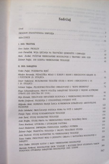 Zbornik radova znanstvenoga simpozija održanog u Sarajevu 3. i 4. srpnja 1991. prigodom obilježavanja stote obljetnice postojanja Bogoslovije.