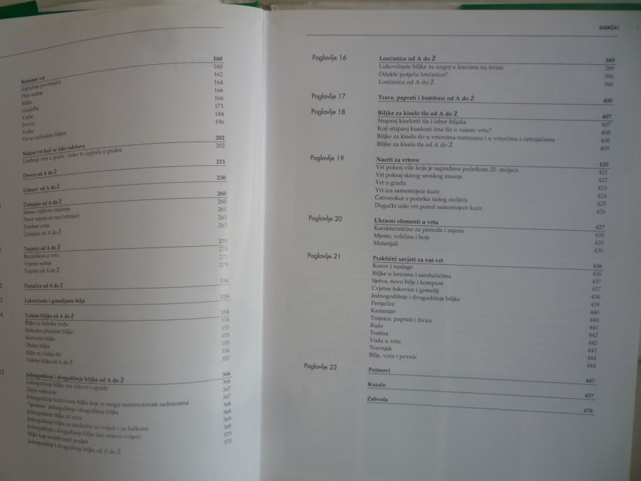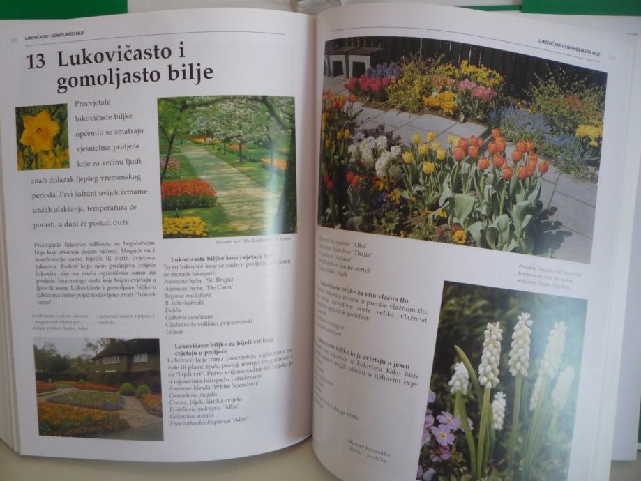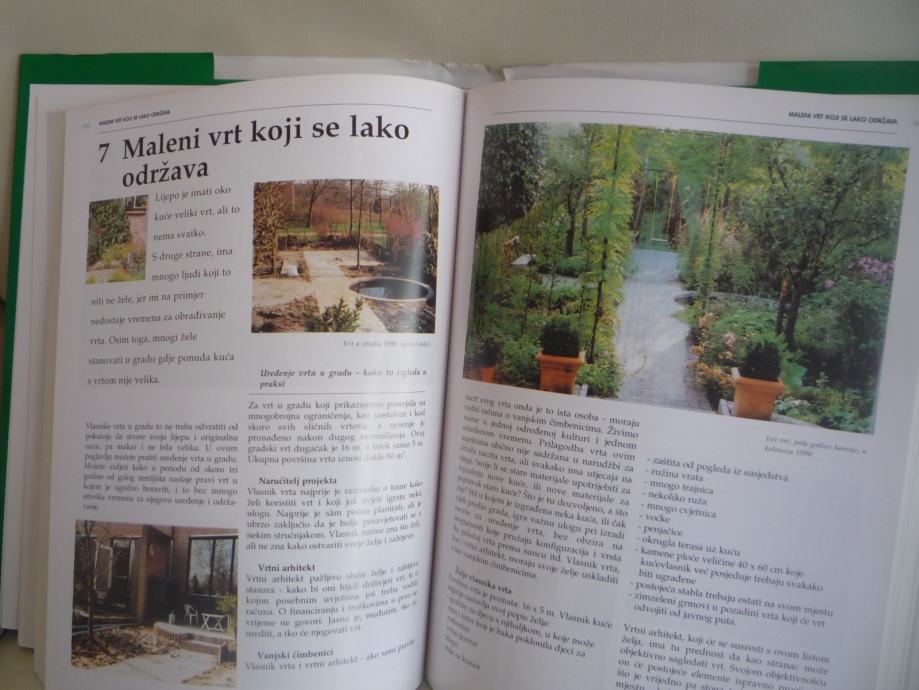 Priručnik ilustriran slikama i crtežima u boji, sve informacije o sadnji, preuređivanju i njezi vrta. Opisi različitih tipova vrta kao što su vodeni vrt, kamenjar, vrt-tratina ili vrt s domaćim biljem, sve o drveću, grmlju, četinjačama, trajnicama, lukovicama, gomoljastim, jednogodišnjim i dvogodišnjim biljkama. 479 stranica.