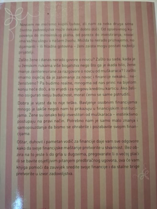 Knjiga je rezultat stotina razgovora autorice sa ženama o njihovu odnosu prema novcu i financijama. Po njoj su žene bolji investitori od muškaraca i potrebno je samo malo više znanja i samopouzdanja da svoje financijske želje i maštarije pretvore u stvarnost i zauvijek srede svoje financije. Neki njezini savjeti su: smanjite troškove, otplatite dugove, počnite štedjeti, otvorite osobnu mirovinsku štednju, razgovarajte sa suprugom o financijama, naučite djecu raspolagati novcem i povremeno činite mala dobra djela.