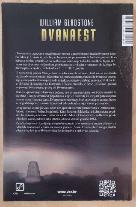 Prodajem roman Dvanaest autora Williama Gladstonea. Radnja prati iznimnog i neočekivanog junaka Maxa, osobu kojoj su svijet boja i brojeva, kao i proročanstvo o tome godine, sastavni dio života. Priča ga vodi na tajanstvena putovanja kako bi razotrkio skrivena drevna misterije proročanstva o kraju vremena dok mu se, prema proročanstvu, treba desiti 21. prosinca 2012. godine.