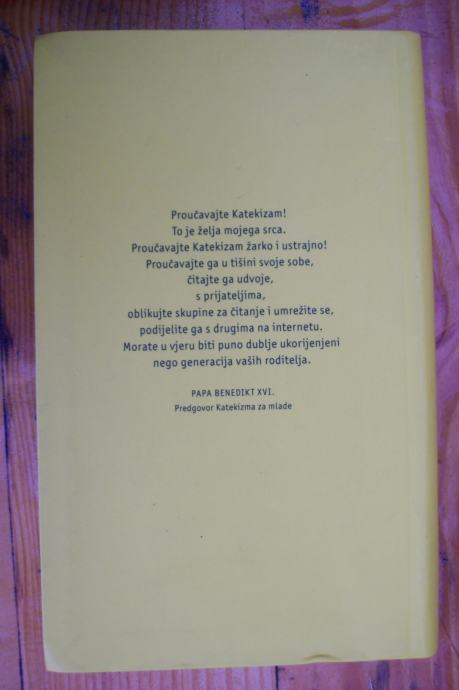 "Proučavajte Katekizam! To je želja mojega srca. Proučavajte Katekizam žarko i ustrajno! Proučavajte ga u tišini svoje sobe, čitajte ga udvoje, s prijateljima, oblikujte skupine za čitanje i umrežite se, podijelite ga s drugima na internetu. Morate u vjeru biti puno dublje ukorijenjeni nego generacija vaših roditelja." Papa Benedikt XVI. u predgovoru YOUCAT-u