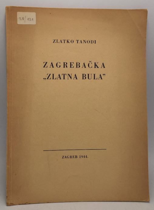 Zlatko Tanodi: Zagrebačka "Zlatna bula" Stranica: 42Dimenzije: 18x24.5Jezik: ZagrebPismo: LatinicaStanje: Vrlo dobroUvez: MekiGodina: 1944