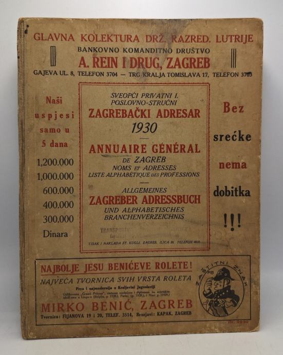 Zagrebački adresar 1930 Stranica: 146Dimenzije: 23x30Jezik: ZagrebPismo: LatinicaStanje: Vrlo dobroUvez: TvrdiGodina: 1930