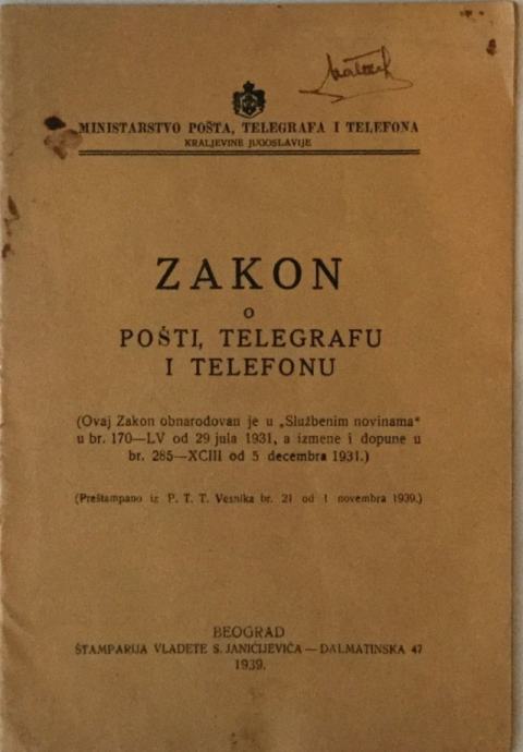ZAKON O POŠTI , TELEGRAFU I TELEFONU