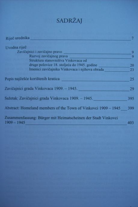 Objavljivanjem prijepisa četiriju knjiga imenika (zapisnika) zavičajnika upravne općine i grada Vinkovaca Državni arhiv u Vukovaru, kao matični županijski arhiv, nastavlja objavljivati vrijedno arhivsko gradivo s područja Vukovarsko-srijemske županije.
