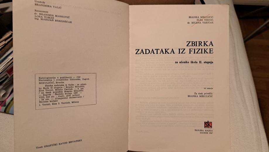 Zbirka zadataka iz fizike iz 1987., s uputama i rješenjima na kraju knjige.