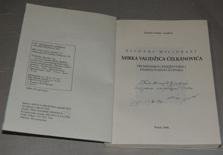 Zdravko Dizdar i dr.i Životni miljokazi Mirka Valdidžića Ćelkanovića potpis Mirka Validžića