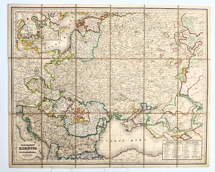 Pavel Josef Šafarika: Slovansky zemevid - Slavenski zemljovid S ovalnom naslovnom kartušom, kartušom s objašnjenjima ("Pregled plemena i njihovih ogranaka") i umetnutom kartom naroda sjeveroistočne EuropeStranica: -Dimenzije: 65x52Jezik: ČeškaPismo: LatinicaStanje: Vrlo dobroGodina: 1842