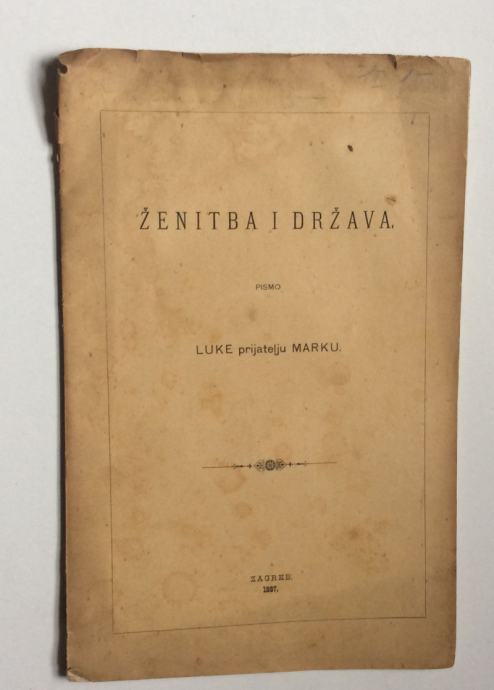 ŽENITBA I DRŽAVA, PISMO LUKE PRIJATELJU MARKU, ZAGREB, 1887.