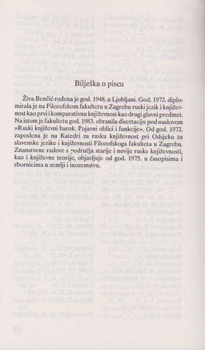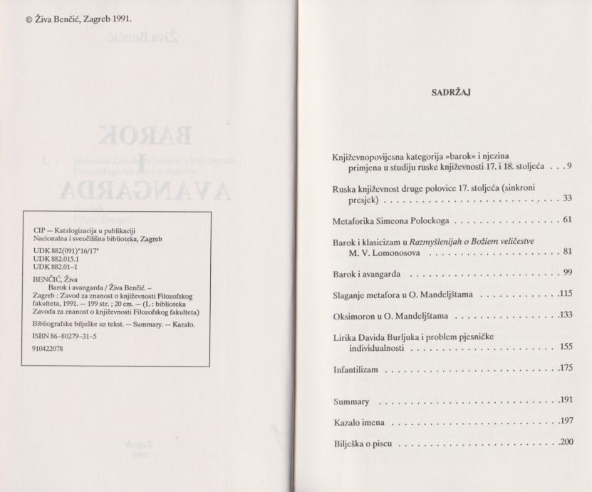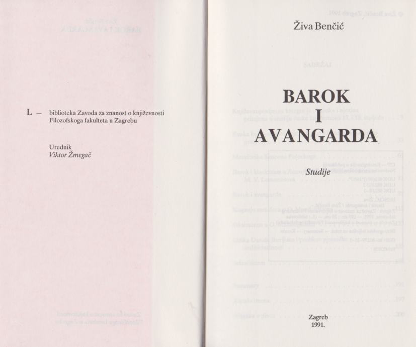 Živa Benčić: Barok i avangarda, Zavod za znanost o književnosti Filozofskog fakulteta u Zagrebu, Zagreb 1991.