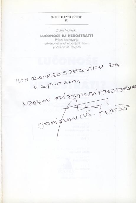 Naslov: Lučonoše ili herostrati Posveta i potpis Tomislava Merčepa