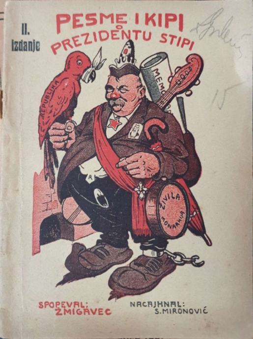 Žmigavec: Pesme i kipi o prezidentu StipiDjelo je primjer političke satire iz razdoblja, vjerojatno 1920-ih, koja kritizira tadašnje političke prilike.