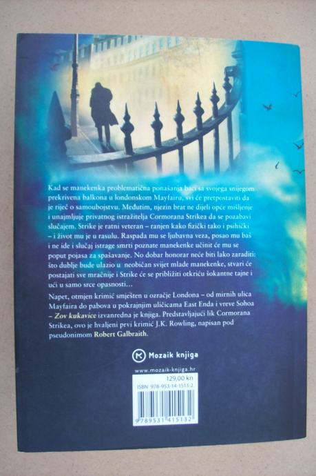 Napet, otmjen krimić smješten u ozračje Londona – od mirnih ulica Mayfaira do pabova u pokrajnjim uličicama East Enda i vreve Sohoa – Zov kukavice izvanredna je knjiga. Predstavljajući lik Cormorana Strikea, ovo je hvaljeni prvi krimić J.K. Rowling, napisan pod pseudonimom Robert Galbraith.