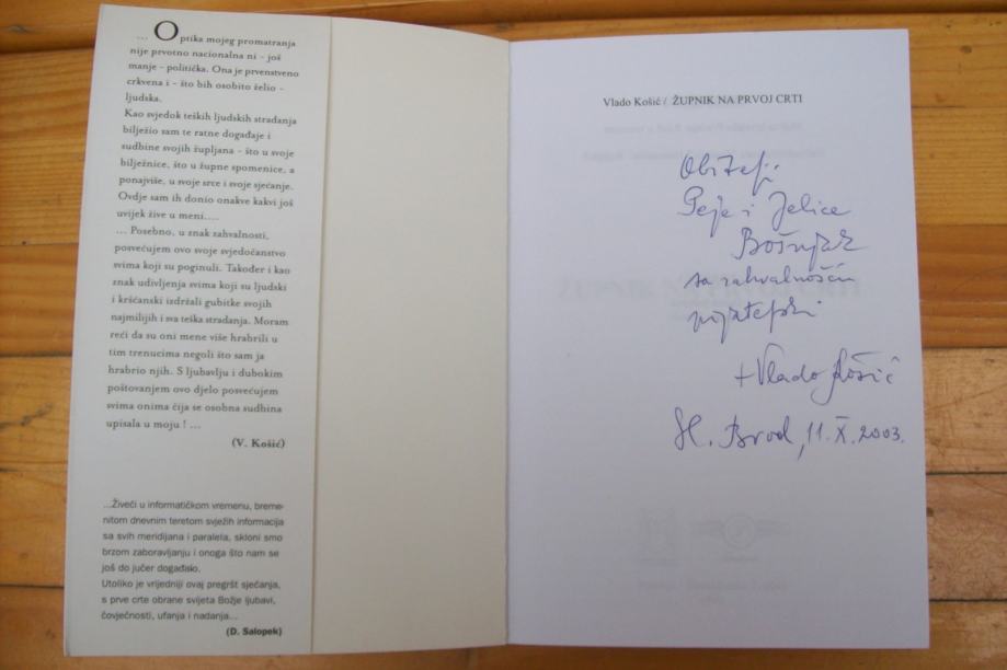 ŽUPNIK NA PRVOJ CRTI - Vlado Košić (s posvetom i potpisom autora)