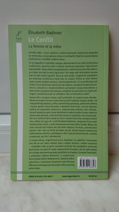 Svi su ti zahtjevi ženu vezali za kuću i domaćinstvo do razmjera kakvi nisu viđeni od 1950-ih, tvrdi Élisabeth Badinter, doajenka francuske intelektualne misli, u svom beskompromisnom djelu "Sukob : Kako ideal suvremenog majčinstva ugrožava položaj žene". Misao da niste dorasli kao majka ako koristite mliječnu formulu, jednokratne pelene, čak i ako ne želite prirodan porod, misao koja je nametnuta očekivanjima okoline, potkopava u ženi osjećaj ženstvenosti, vlastite vrijednosti, pa čak i smislenosti.