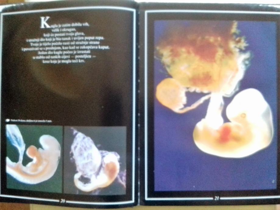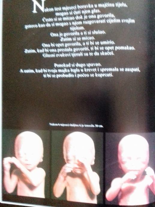 "Na ovim stranicama udruženo je sve ono što se može naučiti od predporođajne psiholoije, elektronskog snimanja srca fetusa i ultrazvuka, kako bi se prikazala pustolovina devet mjeseci dugog života prije rođenja."