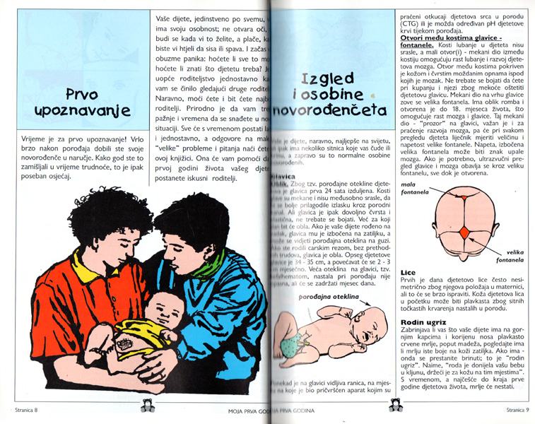 Knjiga sadrži pregršt informacija o razvoju i brizi o novorođenčadi do prve godine života.