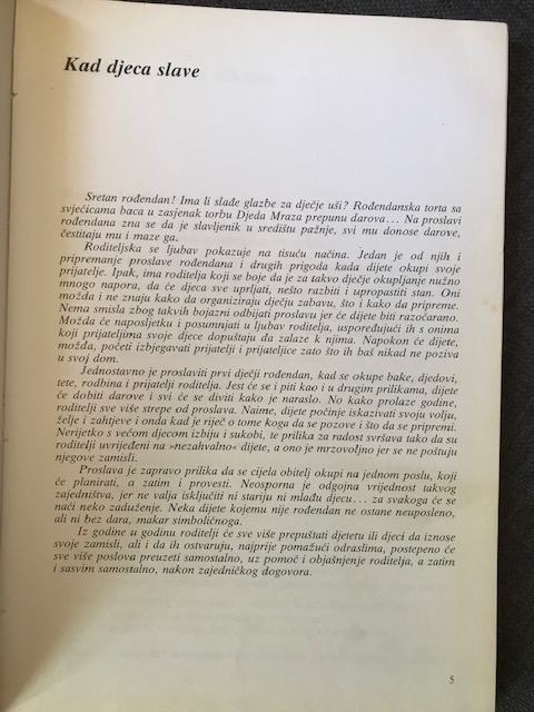 Roditeljska se ljubav pokazuje na tisuću načina. Jedan je od njih i pripremanje proslave rođendana i drugih prigoda kada dijete okupi svoje prijatelje. Ipak, ima roditelja koji se boje daje za takvo dječje okupljanje nužno mnogo napora, da će djeca sve uprljati, nešto razbiti i upropastiti stan. Oni možda i ne znaju kako da organiziraju dječju zabavu, što i kako da pripreme. Ova će im knjiga pomoći u tome.(iz tiska)