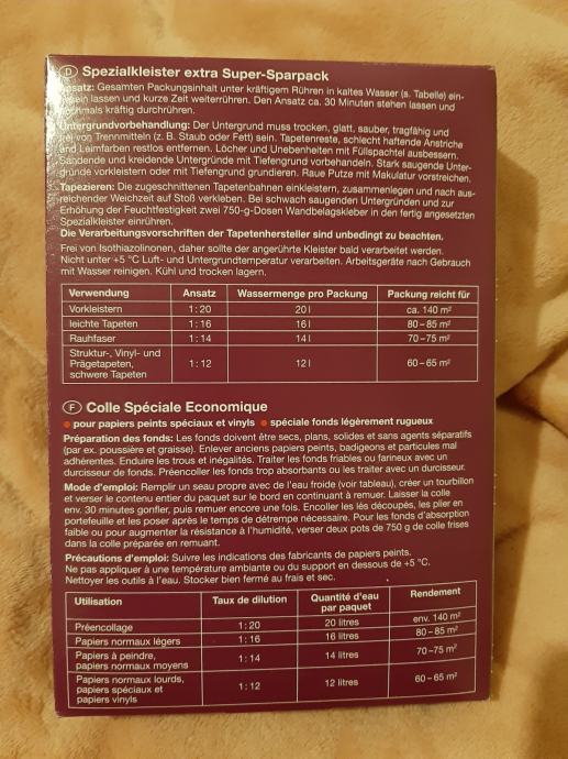 Prodajem novo pakiranje ljepila za tapete, sadrži 1 kg praha.