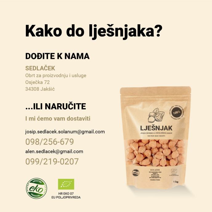 Prodajemo EKO lješnjak očišćen rod 2025. godina.