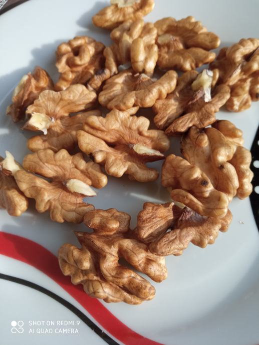 Prodajem očišćene, kvalitetne orahe. Velike i ukusne jezgre i tanke ljuske - jezgra se lako vadi iz ljuske. Plodovi su prirodno uzgojeni bez ikakvog tretiranja ili prskanja. Sušeni na suncu i vjetru. Cijena je 8 € za 1 kg. Može i prodaja u ljusci - 3.5 € za kilogram. Berba je 2022. godine.