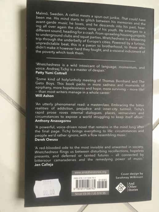 Early in Swedish author Andrzej Tichý’s fifth novel, Wretchedness, this reader had the sinking feeling that the narrative would be a latter-day, sentimental retrospective on drug addiction and random violence, its events set in urban squalor populated by, to borrow from Kerouac, “desolation angels.” That was soon proven wrong, as Tichý achieves something more like a sophisticated version of Trainspotting. Unlike Irving Welsh’s gallows humor, however, Tichý’s discordant sounds and philosophies seem to be in unison with the wasted terrain of Wretchedness. The novel offers an ugly picture of racial strife hidden in Sweden (and elsewhere), as well as the resulting economic disadvantages endured by those living in the margins. Here we have the next lost generation of immigrant youth depicted not in a cynical manner, but in a rather melancholy swansong and bleak realism: