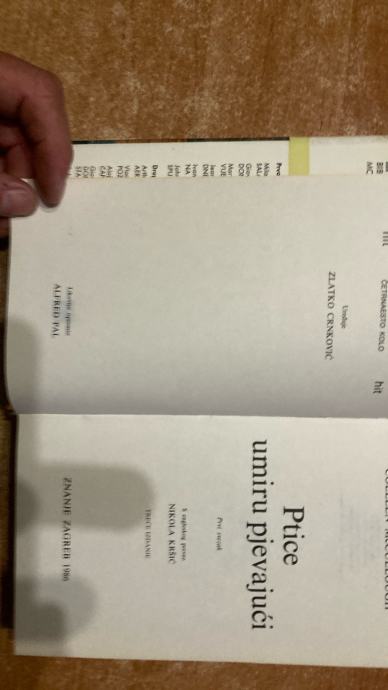 Prodajem komplet romana Colleen McCullough "Ptice umiru pjevajući" u dva sveska (1. i 2. knjiga), vrlo dobro očuvan. Radi se o izdanju naklade Znanje na hrvatskom jeziku.