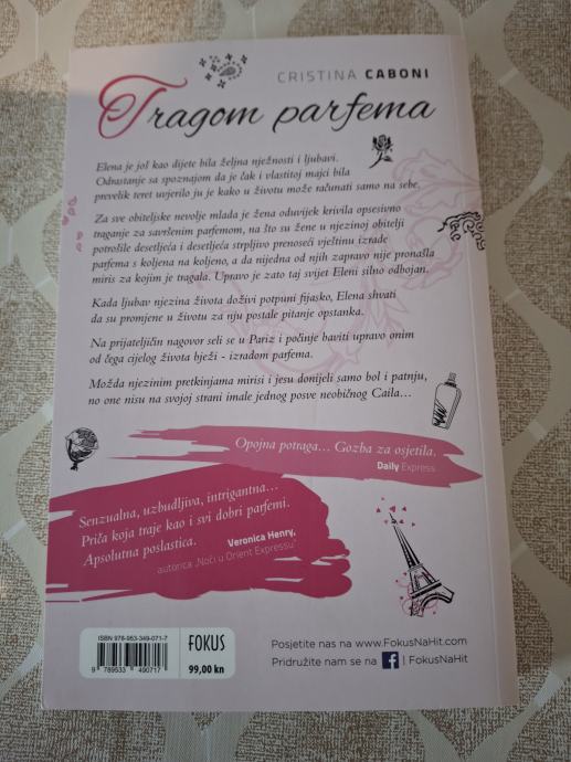 Cristina Caboni: TRAGOM PARFEMA, izdavač Fokus, meki uvez, 320 stranica, u odličnom stanju, cijena 12 EUR. Ne prodajem preko PayProtect. Info na 0917912699.