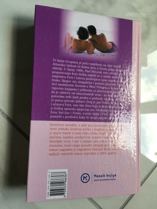 Istančano razrađen, a ipak pun emocionalne neizvjesnosti, često jednako komičan koliko i tragičan, roman «Tri lipnja» je poučan triptih o tome kako učimo živjeti, i to punim plućima, usprkos neizlječivim tugama i izdajama srca - kako obiteljske veze, i one u kojima smo rođeni i one koje sami stvaramo, često znaju ponuditi iskupljenje i radost.