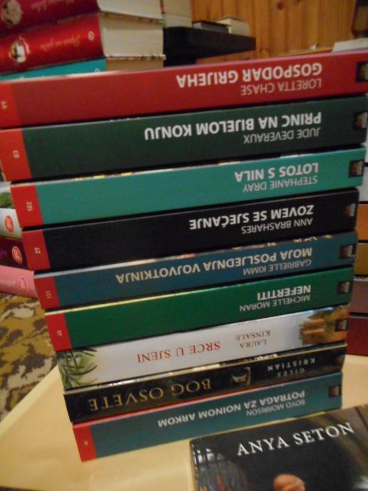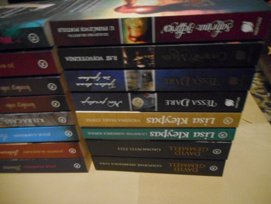 Knjige su nove, ali su dugo vremena bile u jednoj sobi gdje je bilo vlage pa su se izvana na stranicama pojavile male žute mrlje. Inače su knjige čiste iznutra, naslovna stranica bez ikakvih oštećenja, knjige nimalo ne smrde po plijesni, jedini problem su te mrljice izvana. Neke knjige imaju samo neznatne mrljice, a neke knjige su samo malo požutjele izvana,a nemaju mrljice. Dodatne slike šaljem na upit. Pogledajte popis knjiga, cijene su istaknute kraj svake knjige i na popisu su još neke knjige koje nisu na slikama. Dostupne su samo knjige koje su na popisu.