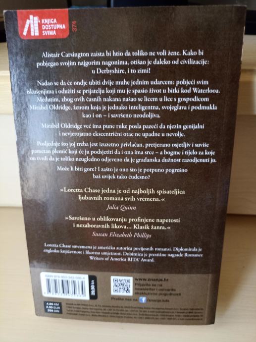 Alistair Carsington zaista bi htio da toliko ne voli žene. Kako bi pobjegao svojim najgorim nagonima, otišao je daleko od civilizacije: u Derbyshire, i to zimi! Nadao se da će ondje ubiti dvije muhe jednim udarcem: pobjeći svim iskušenjima i odužiti se prijatelju koji mu je spasio život u borbi kod Waterlooa. Međutim, zbog ovih časnih nakana našao se licem u lice s gospođicom Mirabel Oldridge, ženom koja je jednako inteligentna, svojeglava i podmukla kao i on – i savršeno neodoljiva. Mirabel Oldridge već ima pune ruke posla pazeći da njezin genijalni i nevjerojatno ekscentrični otac ne upadne u nevolje. Posljednje što joj treba jest izuzetno privlačan, pretjerano osjetljiv i suviše pametan plemić koji će ju podsjetiti da i ona ima srce – a bogme i tijelo za koje on tvrdi da je toliko neugledno odjeveno da je građanska dužnost svući ga. Može li biti gore? I zašto je ono što je potpuno pogrešno baš uvijek tako čudesno?