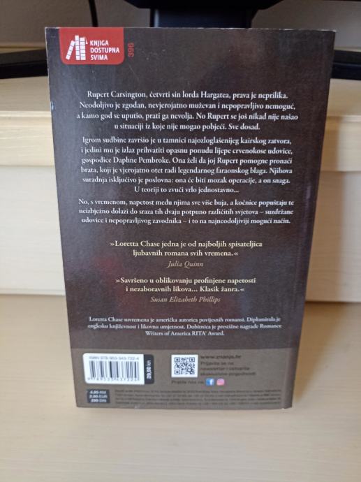 Egipat, 1821. Rupert Carsington, četvrti sin lorda Hargatea, prava je neprilika. Neodoljivo je zgodan, nevjerojatno muževan i nepopravljivo nemoguć, a kamo god se uputio, prati ga nevolja. No Rupert se još nikad nije našao u situaciji iz koje nije mogao pobjeći. Sve dosad.Igrom sudbine završio je u tamnici najozloglašenijeg kairskog zatvora, i jedini mu je izlaz prihvatiti opasnu ponudu lijepe crvenokose udovice, gospođice Daphne Pembroke. Ona želi da joj Rupert pomogne pronaći brata, koji je vjerojatno otet radi legendarnog faraonskog blaga. Njihova suradnja isključivo je poslovna: ona će biti mozak operacije, a on snaga. U teoriji to zvuči vrlo jednostavno… No, s vremenom, napetost među njima sve više buja, a kočnice popuštaju te neizbježno dolazi do sraza tih dvaju potpuno različitih svjetova – suzdržane udovice i nepopravljivog zavodnika – i to na najneodoljiviji mogući način.