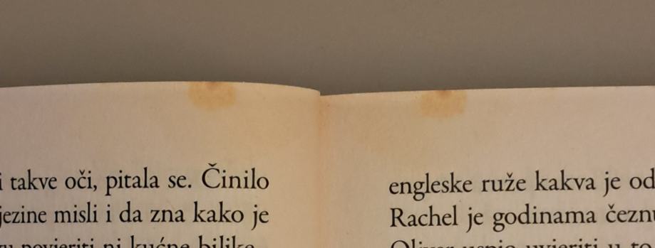 U dobrom stanju, čitana. Na prvoj slici se vide mrlje od vlage, a na drugoj je nešto malo pošarano, možda tijekom tiskanja.