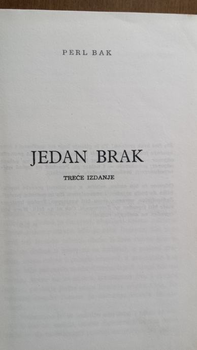 Jedan brak - Pearl Buck - izdavač IP Bratstvo-Jedinstvo, Novi Sad 1967. godine, 12 x 20 cm, tvrdi uvez, 334 stranice.