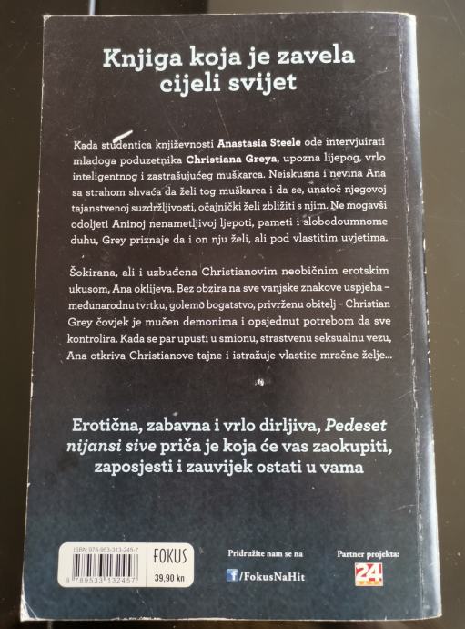 Bestseller autorice E.L.James prvi je dio trilogije koja prati avanture stidljive studentice Anastasie Steele, nakon što upozna karizmatičnog tajkuna Christiana Greya. Erotična, zabavna i vrlo dirljiva knjiga.