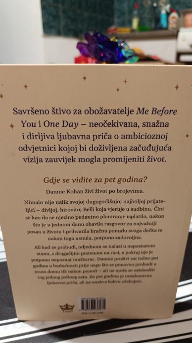 Dannie Kohan živi život po brojevima. Nimalo nije nalik svojoj dugogodišnjoj najboljoj prijateljici – divljoj, hirovitoj Belli koja vjeruje u sudbinu. Čini se kao da se njezino pedantno planiranje isplatilo, nakon što je u jednom danu obavila razgovor za najvažniji posao u životu i prihvatila bračnu ponudu svoga dečka te nakon toga usnula, potpuno zadovoljna. Ali kad se probudi, odjednom se nalazi u nepoznatom stanu, s drugačijim prstenom na ruci, a pokraj nje je potpuno nepoznat muškarac. Dannie proživi sat točno pet godina u budućnosti prije nego što se ponovno probudi u svom domu tik nakon ponoći – ali ne može se osloboditi tog jednog jedinog sata. Za pet godina je nezaboravna ljubavna priča, ali ne onakva kakvu očekujete.